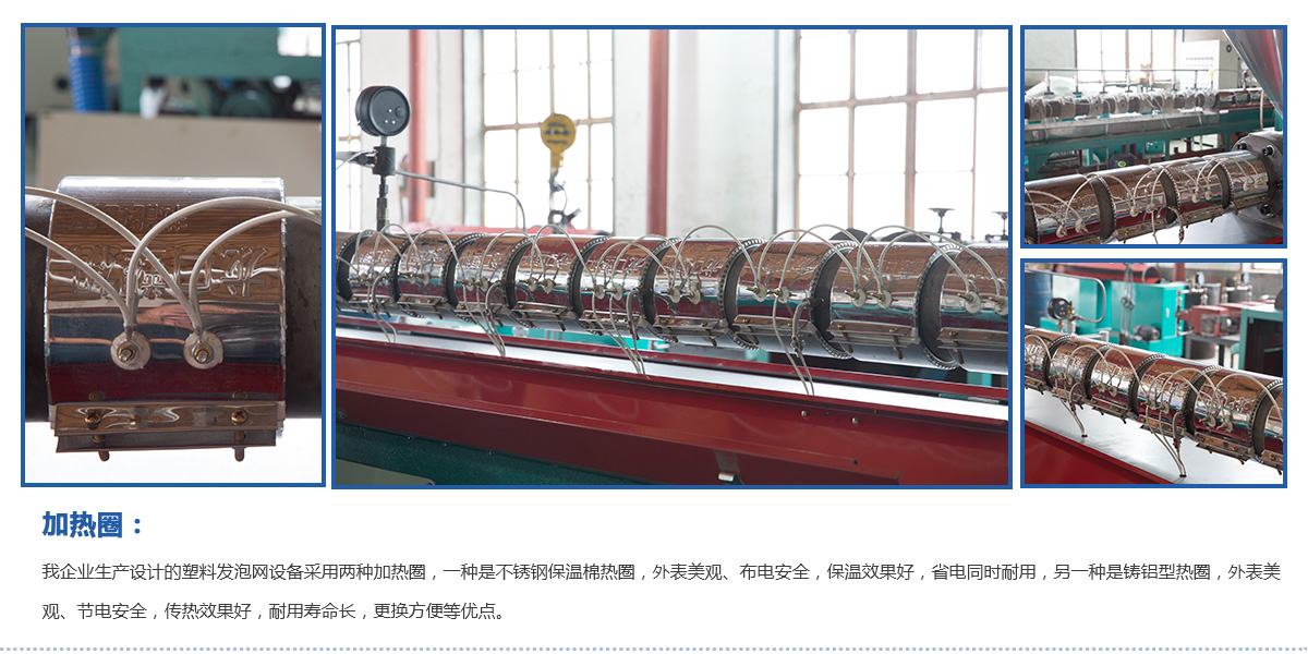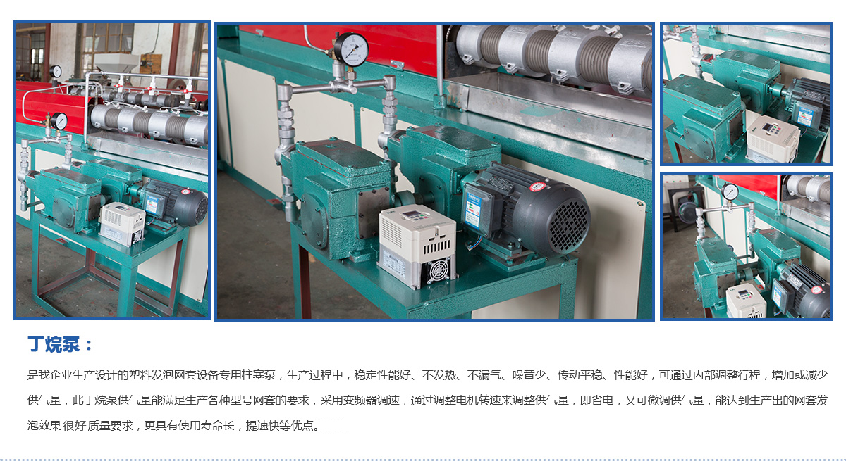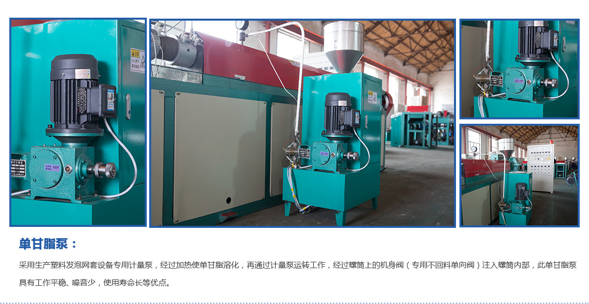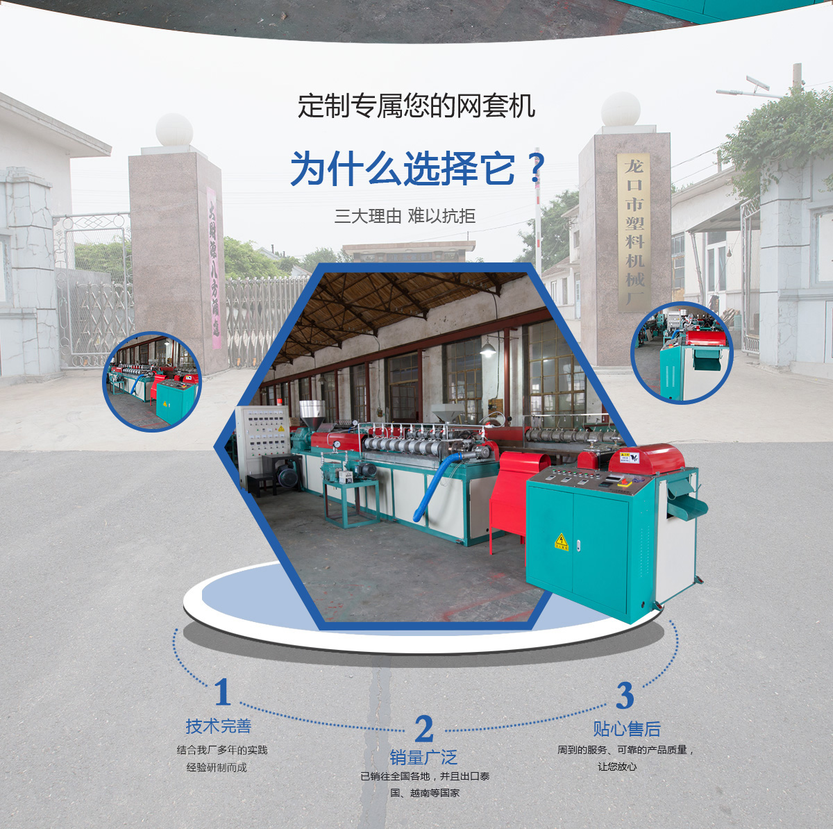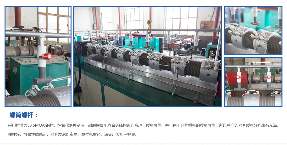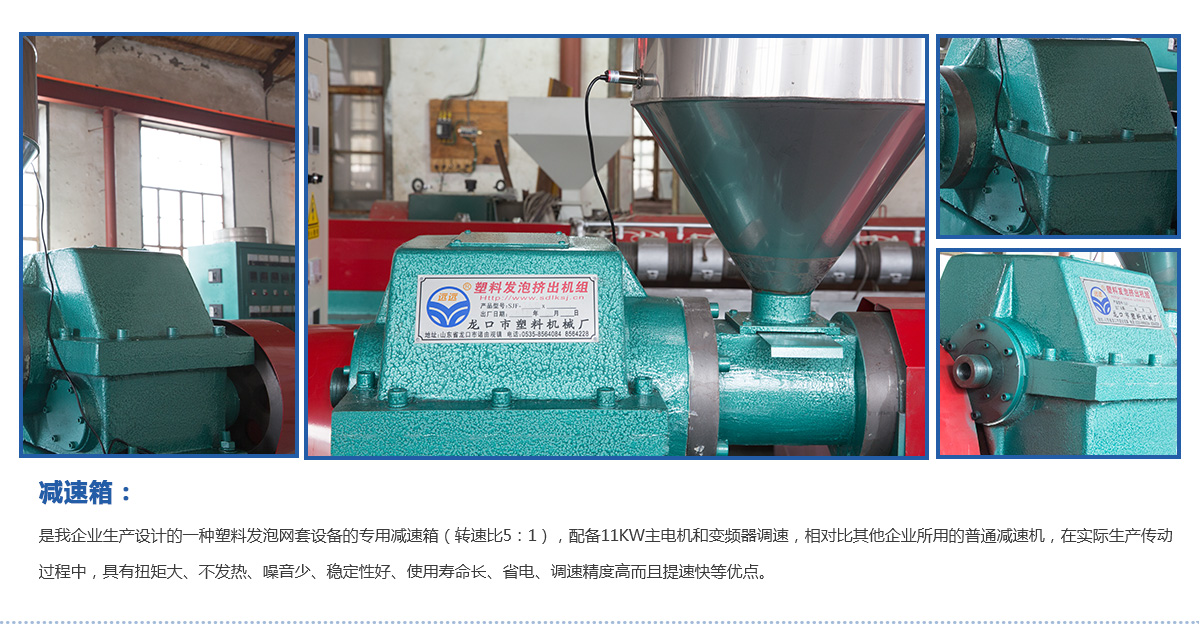 本機組結合我廠多年的實踐經(jīng)驗研制而成,質量可靠并已銷往全國各地,并且出口泰國、越南等國家。機組設計合理,操作方便,運行平穩(wěn),安全節(jié)電,自動化程度高。生產(chǎn)的產(chǎn)品發(fā)泡倍率高、外表美觀、光滑、勻稱、亮度好,24小時能生產(chǎn)12cm長的水果網(wǎng)套70-120萬個。